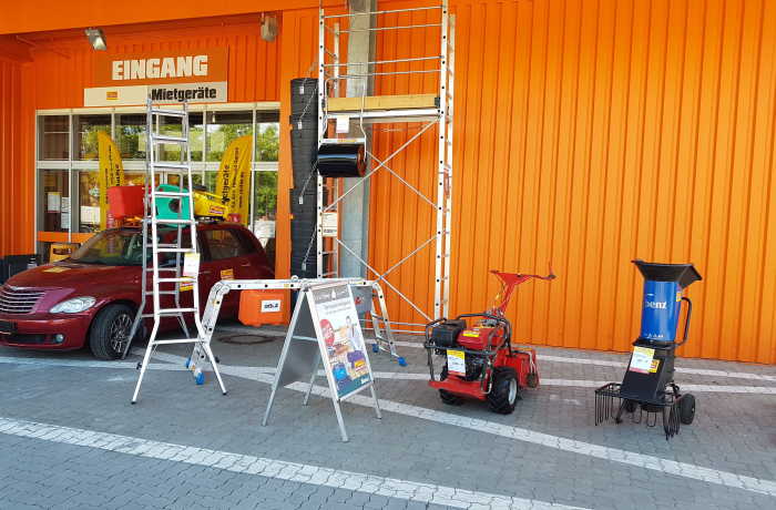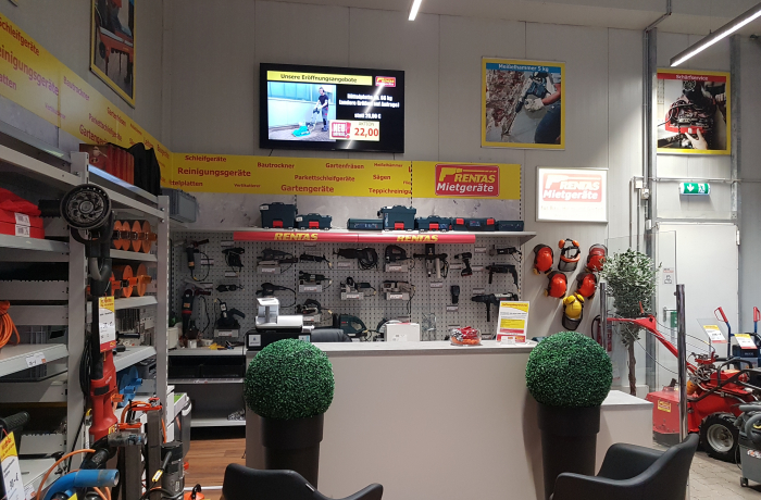Rentas hat ein kundenfreundliches Service-Center für Mietgeräte, Reparaturannahme, Ersatzteilbestellung und Schärfservice konzipiert, das den Kundenvorstellungen von gutem Service gerecht wird und als "Shop-in-Shop-System" in frequenzstarken Baumärkten bereits sehr erfolgreich betrieben wird.